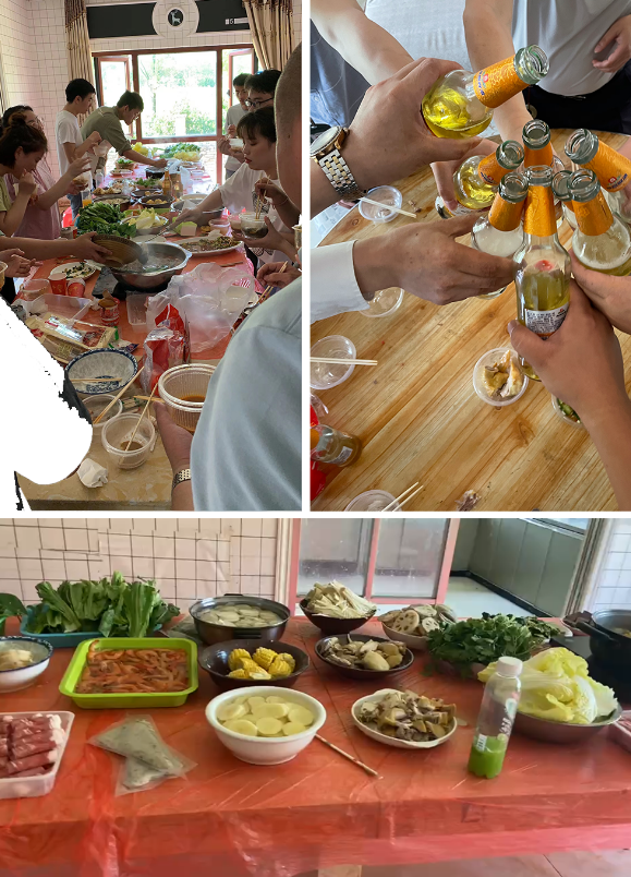 伴著梅嶺上陣陣微風(fēng),一股股菜香氣迎面而來,小伙伴們都迫不及待想吃了 。開吃啦!自助火鍋、美菜、啤酒、伴著同事們的你說我笑愉快的的午餐進(jìn)行著......