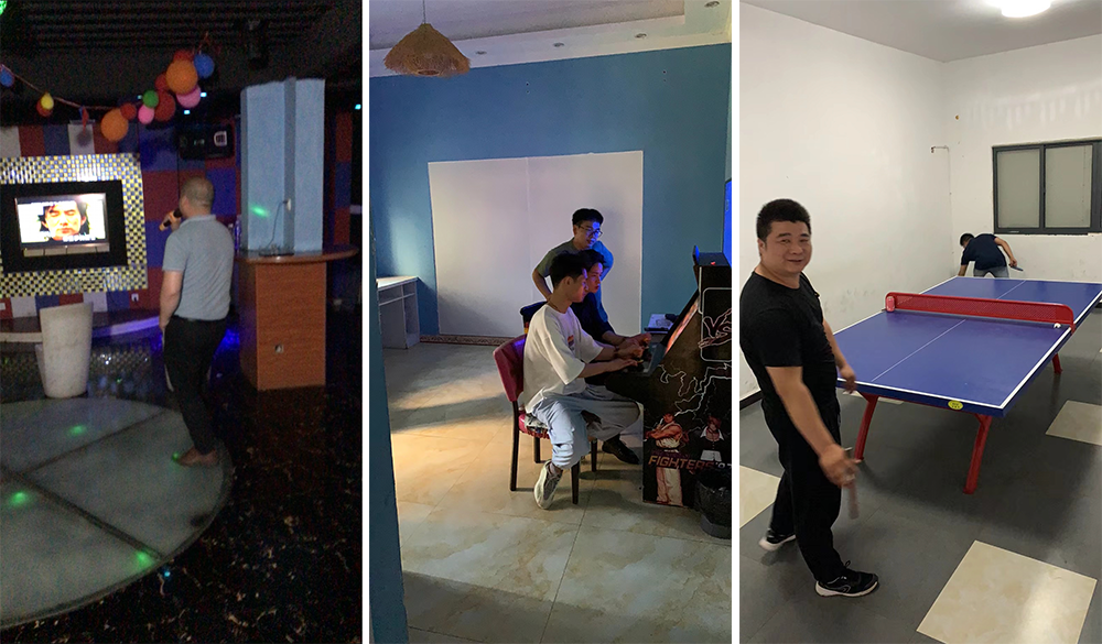 還有打乒乓球、桌球、打牌、麻將、游戲機(jī)、小伙伴們都玩的不亦樂乎!