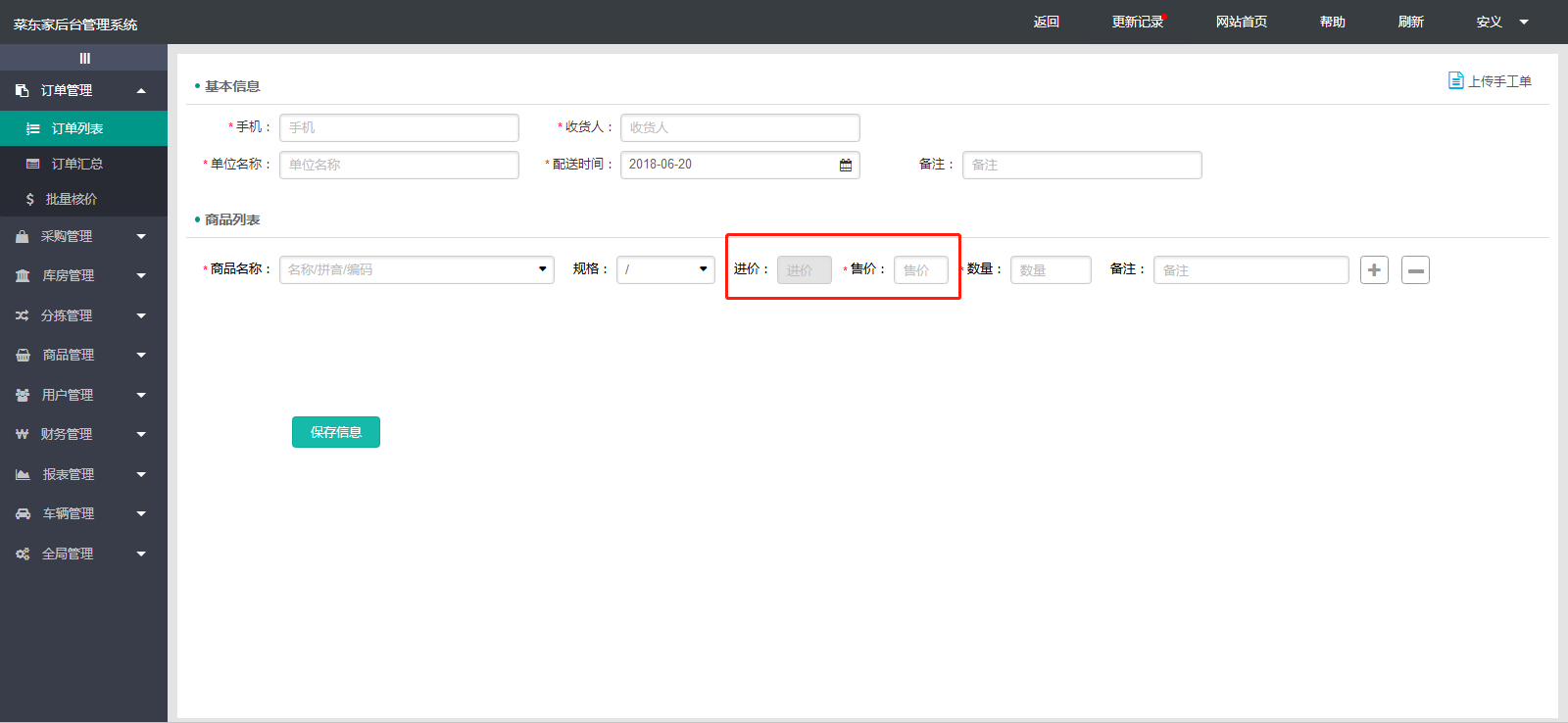 2.后臺(tái)創(chuàng)建訂單增加商品進(jìn)價(jià)和售價(jià)。[ 2018-06-19 ]