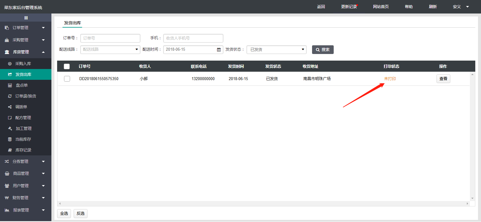 在配送打印添加打印狀態(tài),方便查看配送單是否打印。