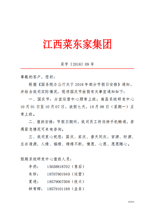 【通知】菜東家集團放假通知!