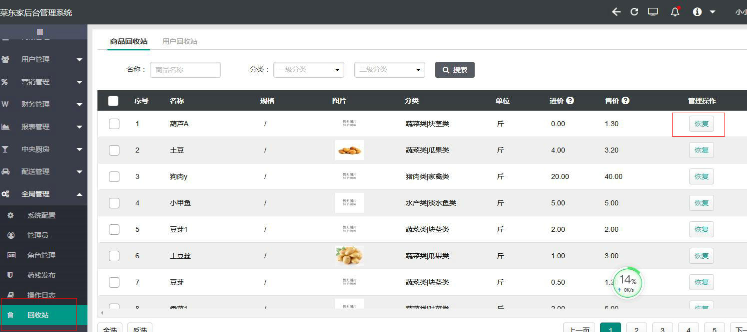5、季節(jié)性商品,為了適配季節(jié)產(chǎn)品有無的變化,在系統(tǒng)后臺的商品管理,對商品列表中的商品,同規(guī)格的商品可做刪除處理,不會完全清處,而刪除后的本規(guī)格商品進(jìn)入回收站,等需要時可恢復(fù)。