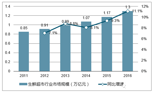 深陷社區(qū)團購爭議中的菜販,只是傳統(tǒng)生鮮物流體系的最下游,就算沒有社區(qū)團購,傳統(tǒng)菜市場模式也已經(jīng)在轉(zhuǎn)型當(dāng)中,絕大部分個體菜販也會消失。據(jù)智研咨詢數(shù)據(jù)顯示,2011-2016年之間,中國生鮮超市行業(yè)增速在不斷呈上升趨勢。同比增速也由2012年的7.1%增長至2016年的11.1%。生鮮超市最大的變化就是取消了中間商,菜品直接從田間或者一級供應(yīng)商發(fā)到門店。