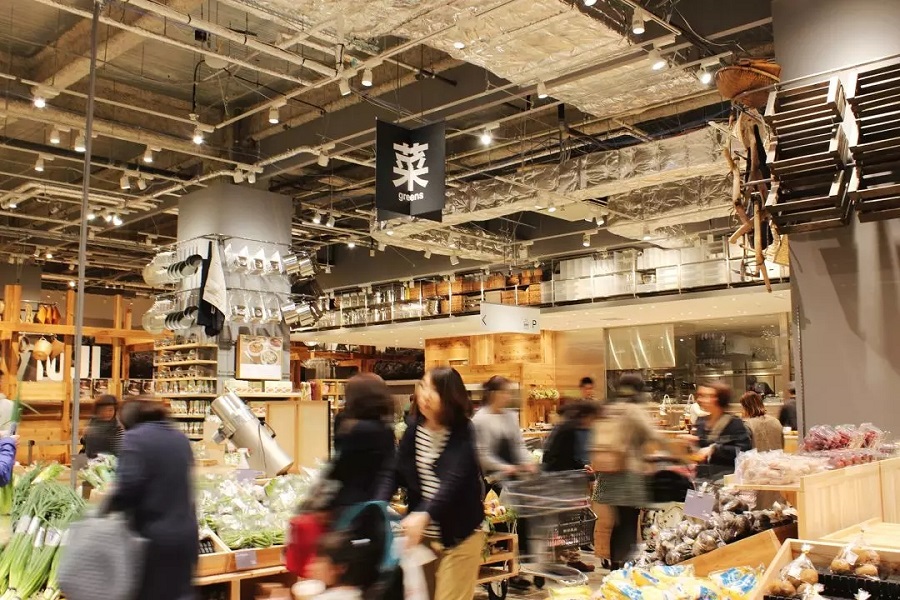 菜場內(nèi)部的設(shè)計(jì)依然是MUJI簡約風(fēng),與國內(nèi)的盒馬、永輝超市等新零售門店類似。除了售賣鮮魚、生肉、蔬果等生鮮農(nóng)副產(chǎn)品外,現(xiàn)場還提供加工和用餐服務(wù),消費(fèi)者能夠親自參與食材的料理。