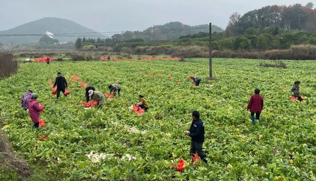 2023年12月13日,正是農(nóng)歷冬月天,晨間,走進(jìn)分宜洋江鎮(zhèn)的鄉(xiāng)村田野,遠(yuǎn)眺山巒,薄霧縈繞,近觀田間,“綠浪”起伏,這里盛產(chǎn)著“洋江蘿卜”。
