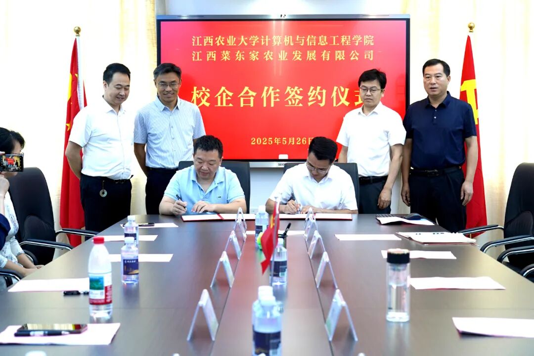 2025年5月26日,江西農(nóng)業(yè)大學(xué)計(jì)算機(jī)與信息工程學(xué)院和江西菜東家農(nóng)業(yè)發(fā)展有限公司校企合作簽約揭牌儀式在分宜縣菜東家總部隆重舉行。江西農(nóng)業(yè)大學(xué)計(jì)算機(jī)與信息工程學(xué)院黨委書記楊峰、分宜縣政府副縣長(zhǎng)郭小平等領(lǐng)導(dǎo)出席了簽約儀式。