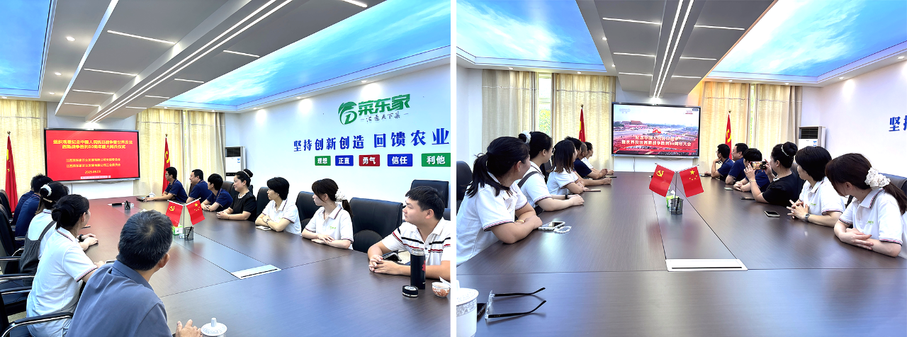 9月3日上午,江西菜東家農(nóng)業(yè)發(fā)展有限公司支部委員會(huì)、工會(huì)委員會(huì)組織員工集中觀看了紀(jì)念中國(guó)人民抗日戰(zhàn)爭(zhēng)暨世界反法西斯戰(zhàn)爭(zhēng)勝利80周年閱兵式。本次閱兵儀式不僅是一場(chǎng)視覺(jué)盛宴,更是一次震撼心靈的精神洗禮,還是一次深刻的愛(ài)國(guó)主義教育。