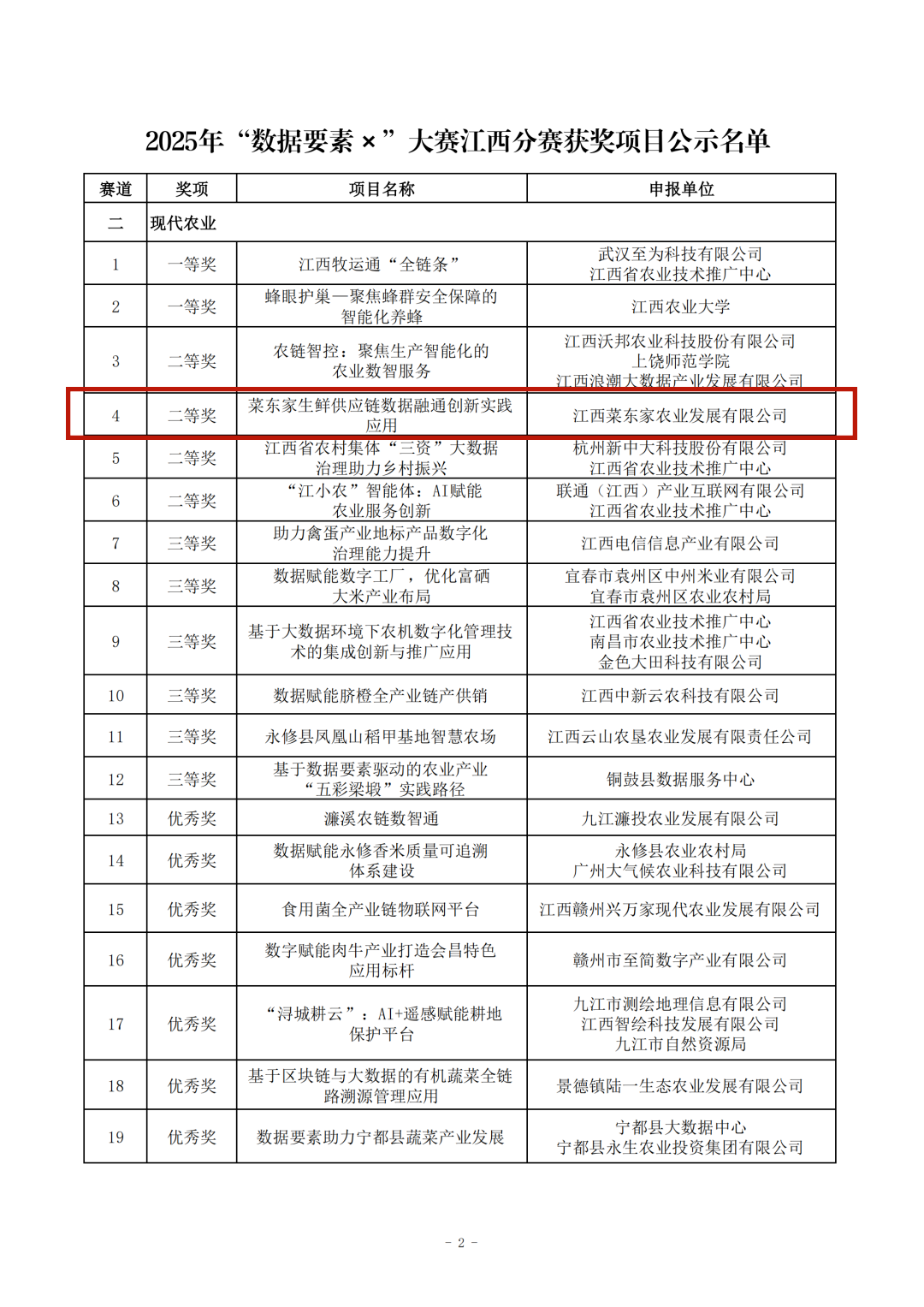 榮獲“現(xiàn)代農(nóng)業(yè)賽道二等獎”