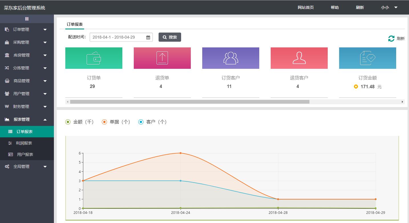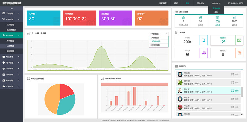 9、數(shù)據(jù)報(bào)表模塊從訂單、利潤、客戶三個(gè)重要的維度把控整個(gè)公司的運(yùn)營情況;