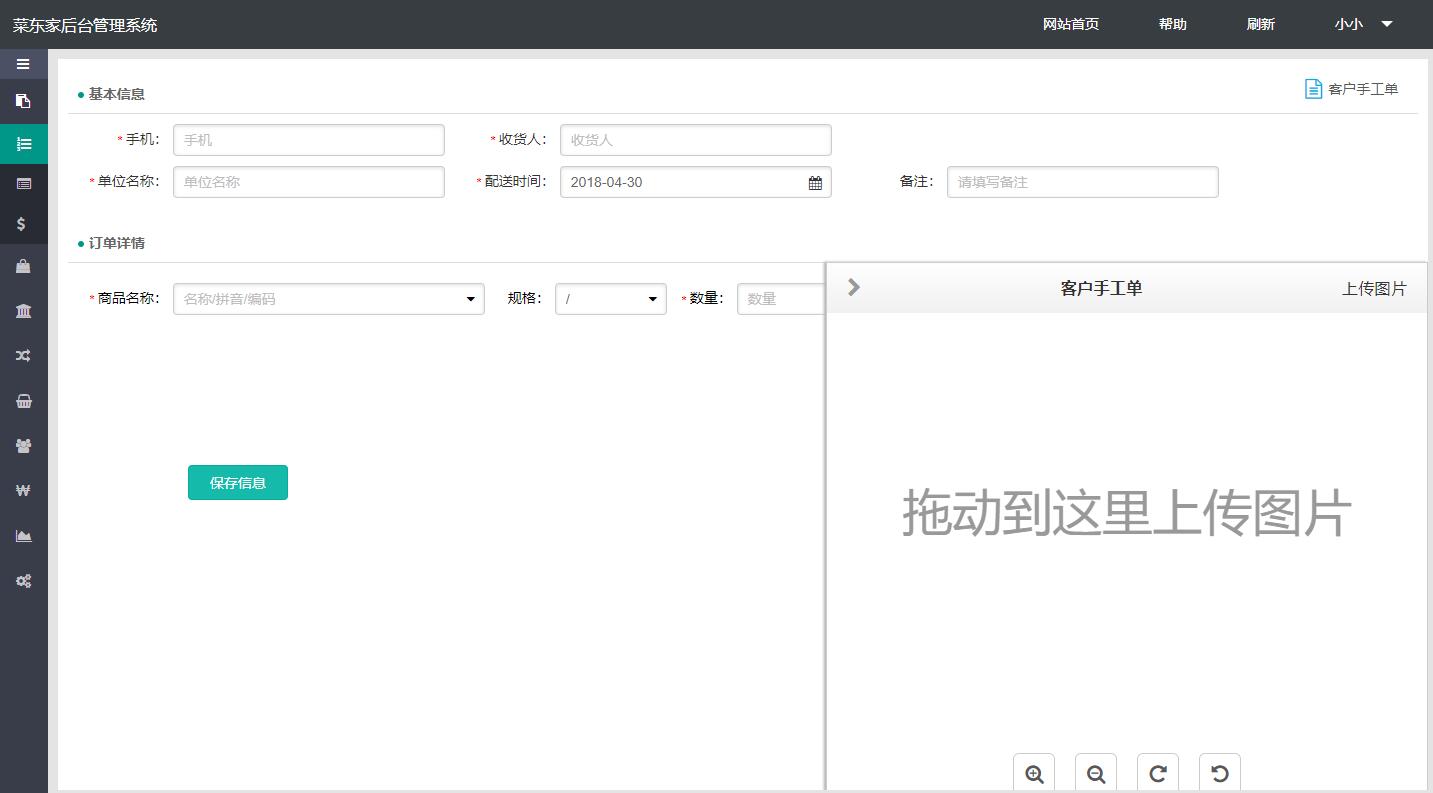 4、訂單編輯(代下單功能)客戶圖片拖至左對(duì)話框邊看邊錄;